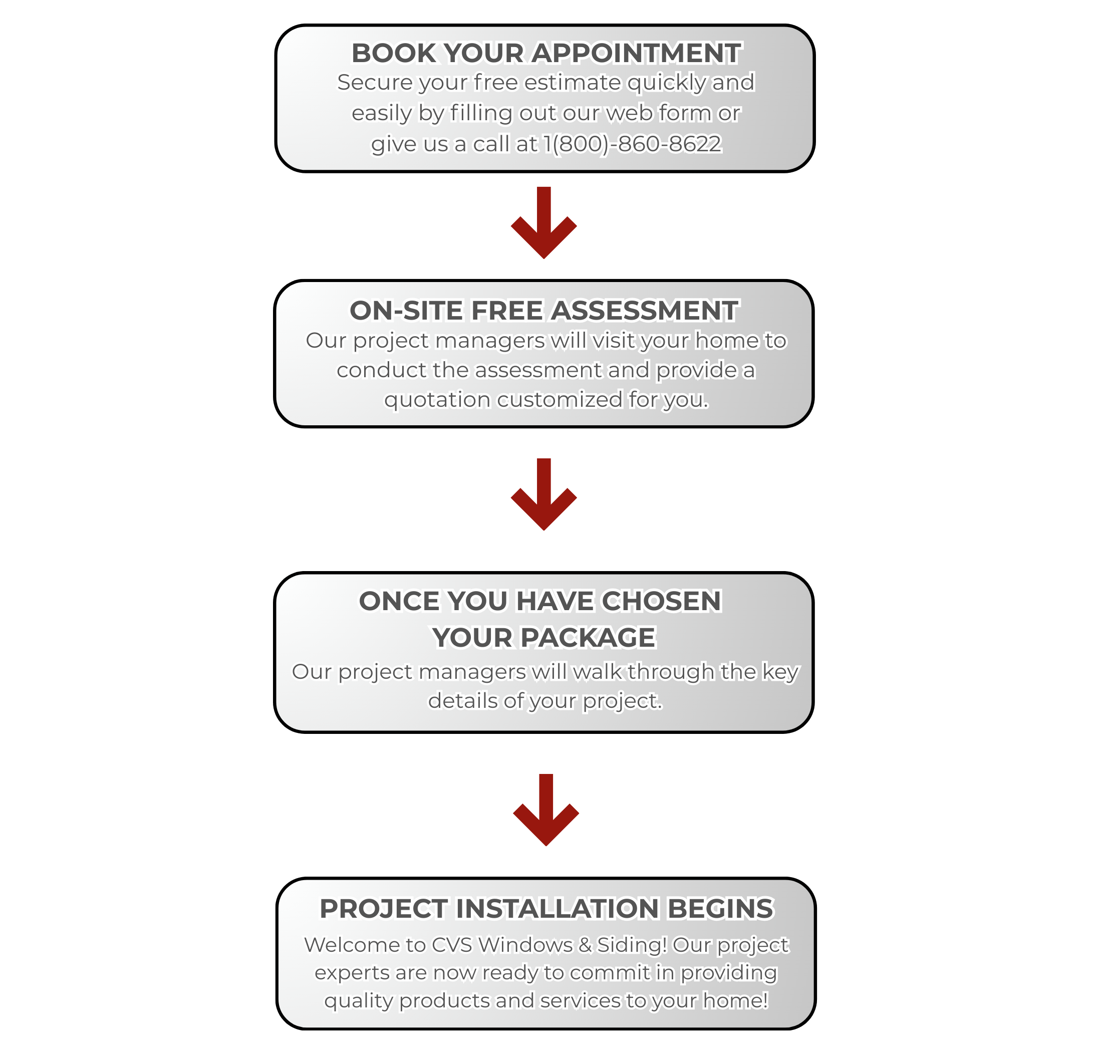 “When you buy from CVS, you buy a lifetime of dependable services.”It is imperative, when purchasing a project, to discern separately quality of product and proper installation techniques; if one area is substandard, you have the probability of job failure and great disappointment!